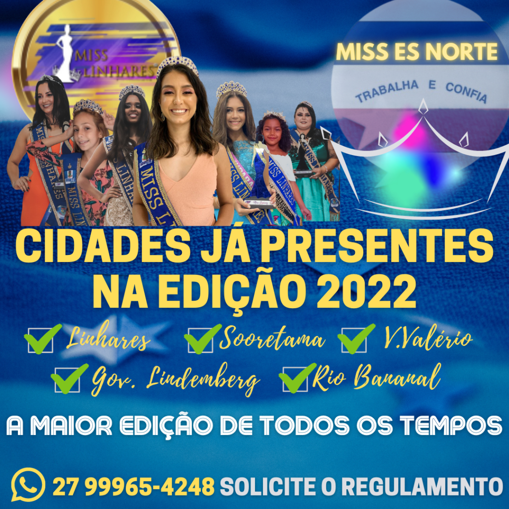 A primeira delas é que a nova edição abrangerá candidatas de além de Linhares, de outras cidades da região como Rio Bananal, Vila Valério, Governador Lindemberg, Sooretama, Jacupemba, etc.